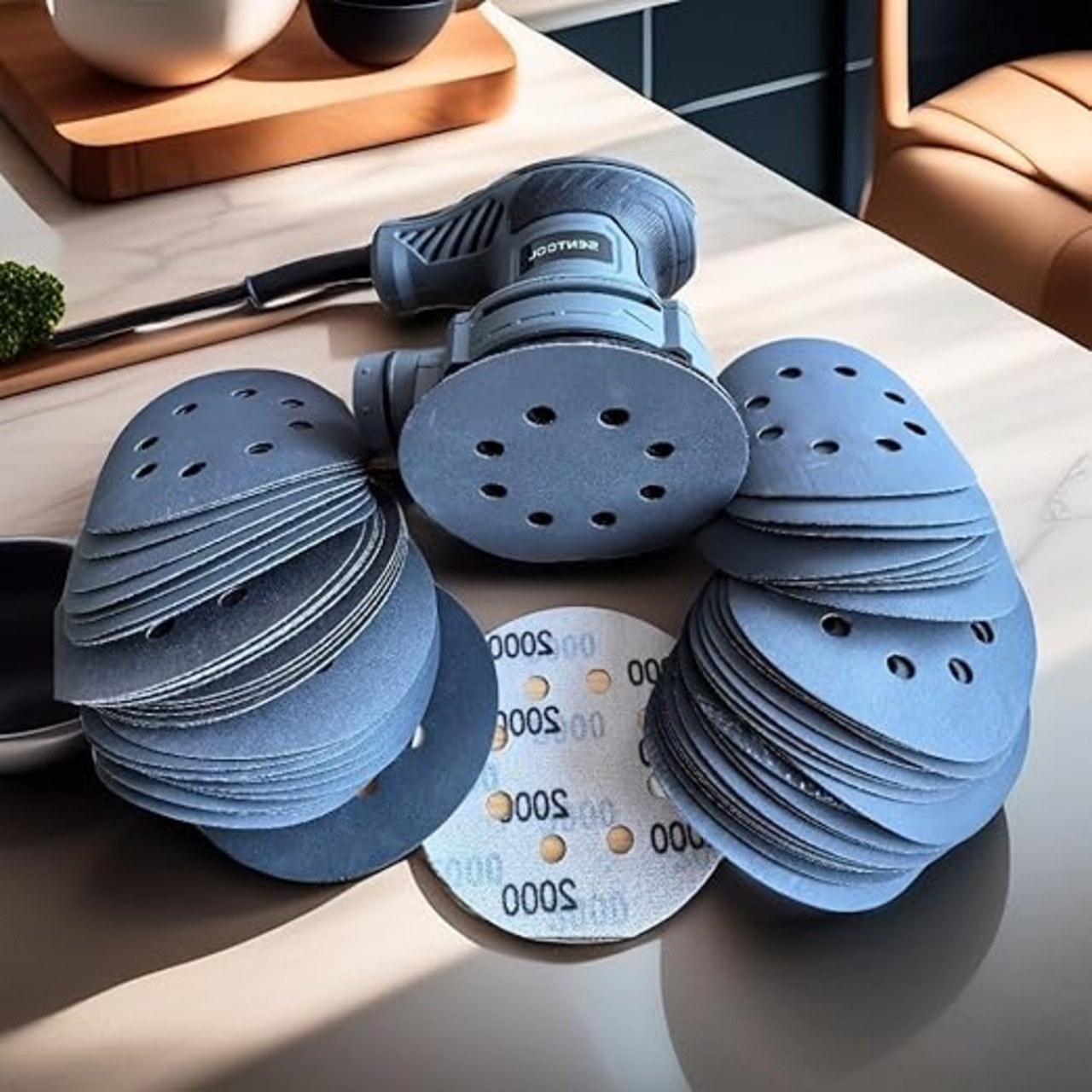 【90枚入セット】#120/240/400/600/800/1000/1500/2000/3000粗目から細か目まで各10枚、SENTOOLオリジナルの品質は、すべての市販の125mmランダムサンダーにほぼ適しています。