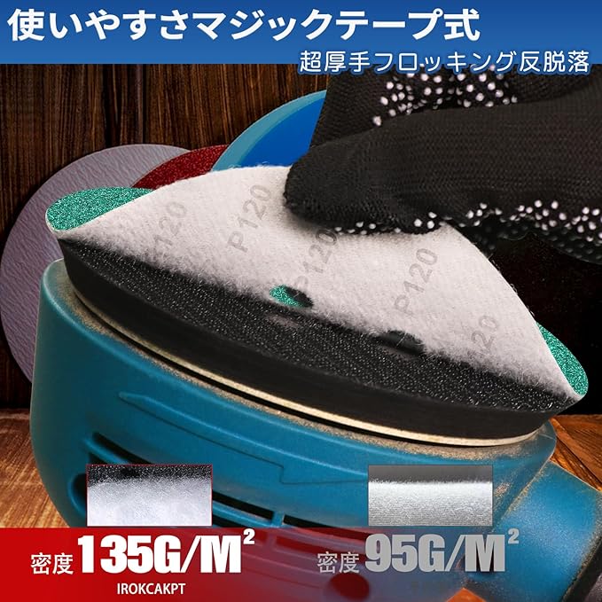 【使いやすいマジックテープ式】ベースは柔軟性の高いポリエステル繊維でできており、サンディング時のひび割れを防ぐ、高密度ナイロンの裏地と相まって、より強力な吸着特性を備えています;集塵用に8つの穴を事前に打ち抜きます 穴の位置も正確でした目詰まりの心配はありません