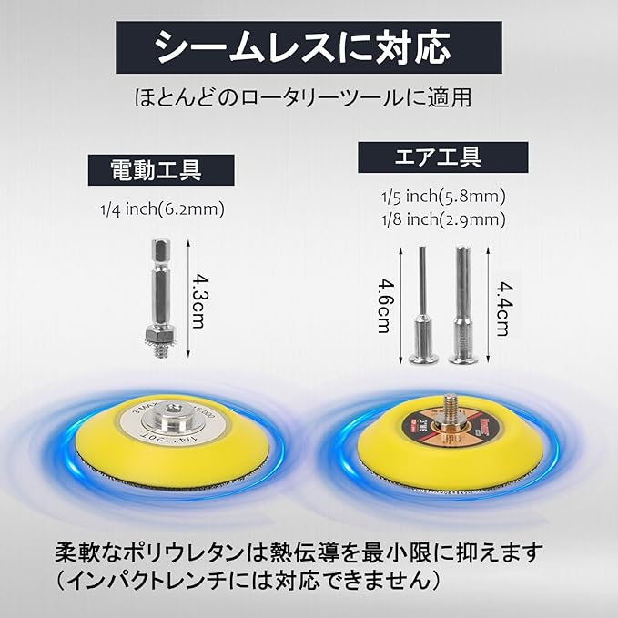 【簡単取り付け】サンドペーパーのバッキングは、ベルクロのデザインを採用し、安定した吸着、剥離することは容易ではなく、すぐに作業効率を向上させるために交換することができ、水研磨でも強力な接着力を発揮します