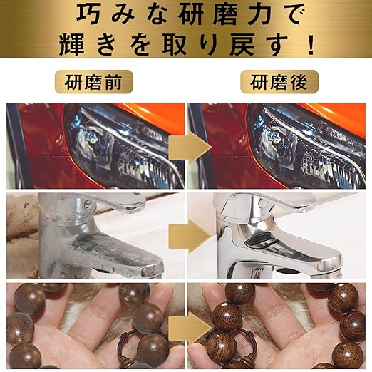 濡れた状態も乾燥状態も正常に利用できます。木製品、金属製品、プラスチック、陶磁器などの研磨に適用します。