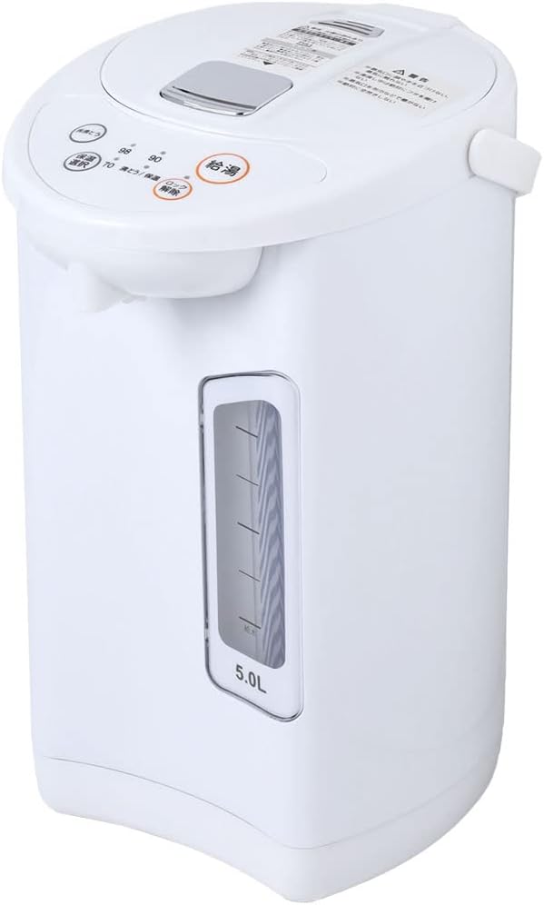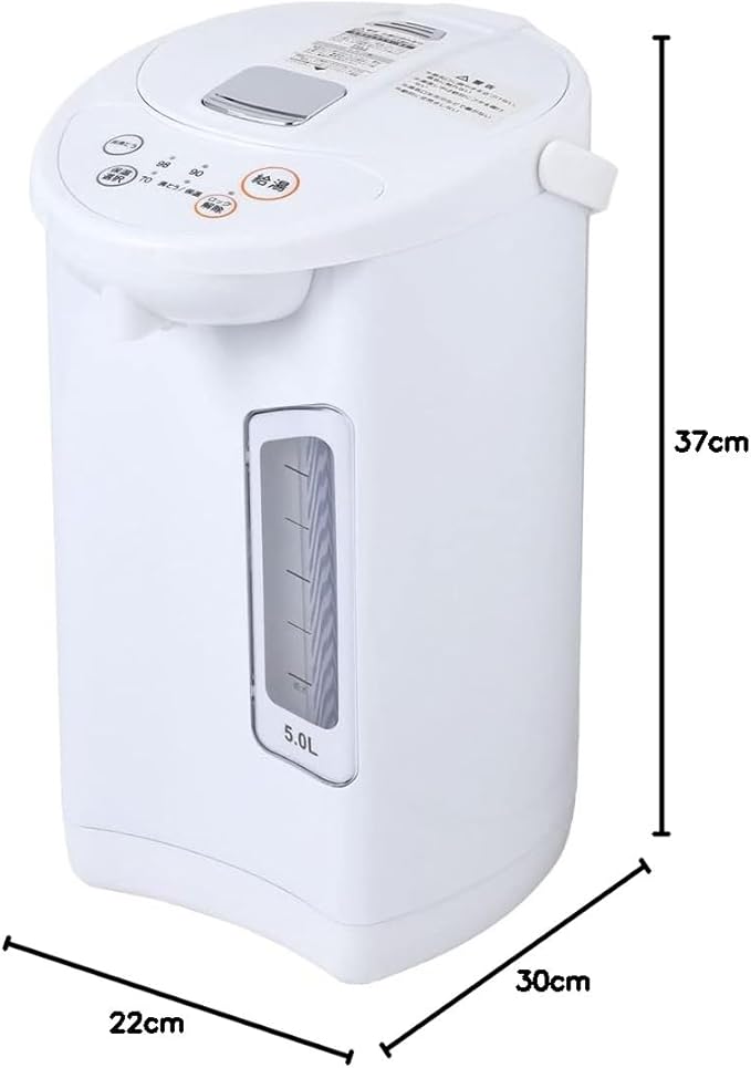 iimono117 電気ポット 保温機能付き [ 2.2L / 3.2L / 5L ] 片手給湯可能 3段階保温 小型 ポット ロックスイッチ マグネットプラグ フッ素コート加工 再沸騰 省エネ 保温 シンプル 湯沸かし 湯沸し器 (ホワイト, 5L) | etshop
