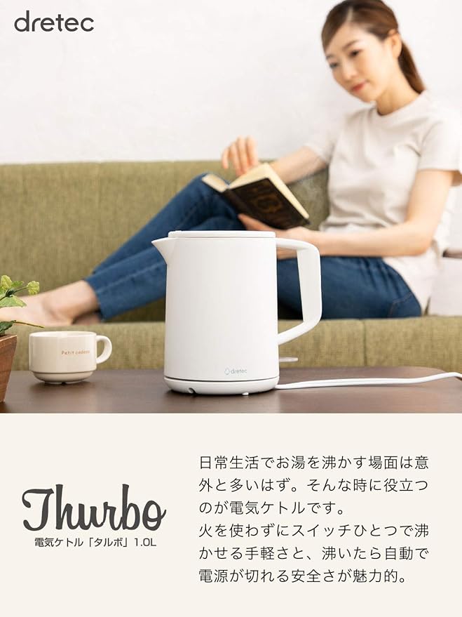 dretec(ドリテック) 電気ケトル 1.0L 900W 小型 軽量 ハイパワー 操作簡単 自動電源オフ 空焚き防止 タルボ ポット 湯沸かし シンプル やかん おしゃれ ホワイト 白 | etshop
