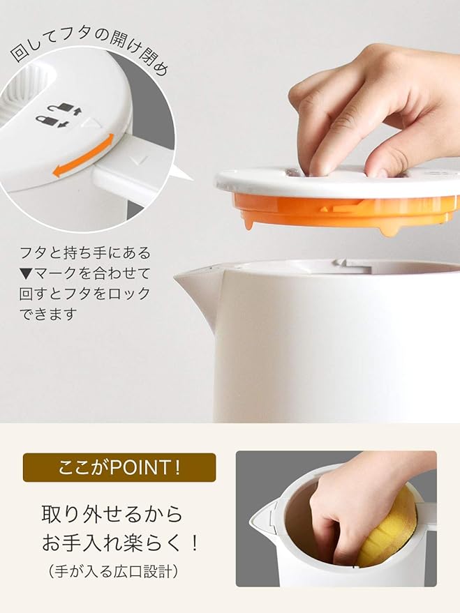 特徴 取り外し可能なフィルター, 水位インジケーター, 空だき防止, 過熱防止機能