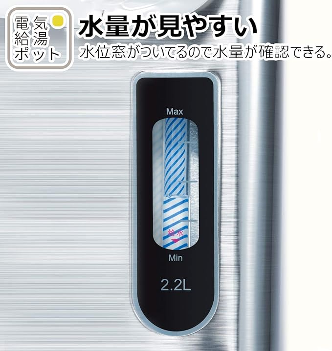 [機能]・再沸騰モード・給湯ロック機能・360度回転ベース・保温温度(98℃・90℃・70℃)・水位窓・シンプルパネル・2way給湯