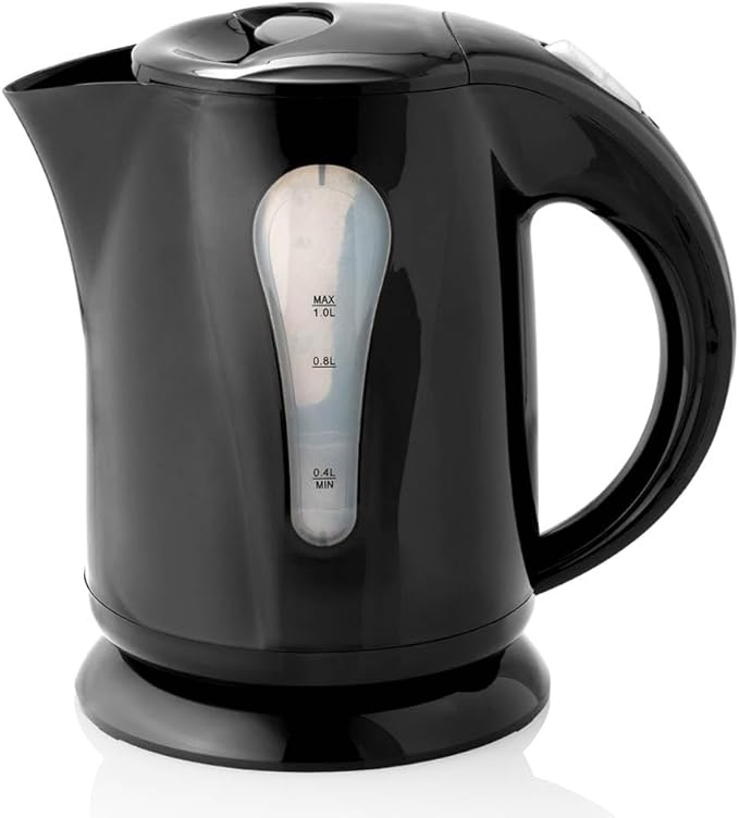 【FaFe】ケトル おしゃれ 電気ケトル NEW 1L 3分で沸騰 ワンプッシュオープン 自動電源OFF 空焚き防止機能 シンプルデザイン 大きな水位窓 パイロットランプ コード巻き込み電源ベース (ブラック) | etshop