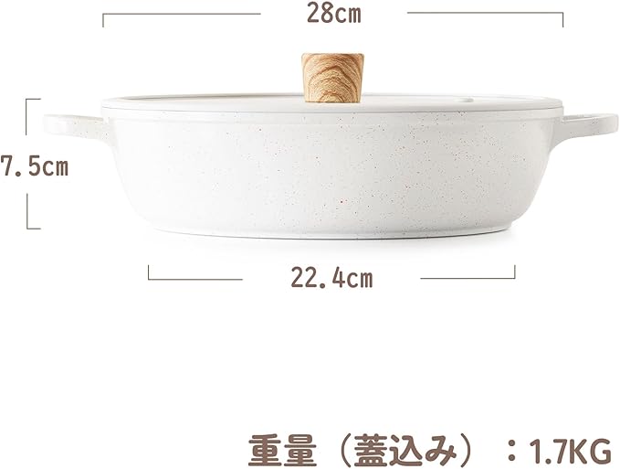 SENSARTE 両手鍋 28cm マーブルコート 卓上鍋 すき焼き鍋 IH対応 ガス対応 一品万能 焦げ付きにくい お手入れ簡単 ガラス蓋付 煮る 焼く 炒める 揚げる しゃぶしゃぶ カレー おでん | etshop