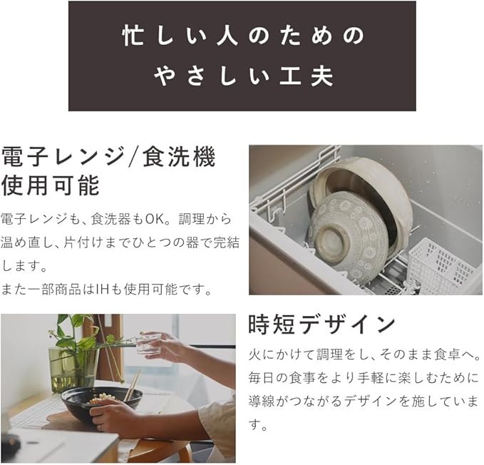 【和の風合いと調理性能を両立】食卓にそのまま出せる上品な佇まいは、日常使いはもちろん、おもてなしにもぴったりです。
