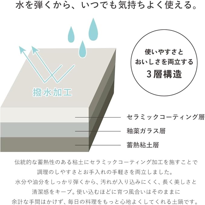 【ふきこぼれにくいデザイン】土鍋ならではの丸みを活かした構造で、吹きこぼれを軽減。