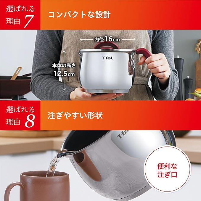 ティファール 片手鍋 16cm 2.6L IH ガス火対応 PFOAなどの有害物質不使用 こびりつきにくさ長持ち 「オプティスペース IHステンレス マルチポット ラテ」 ステンレス G75183 | etshop