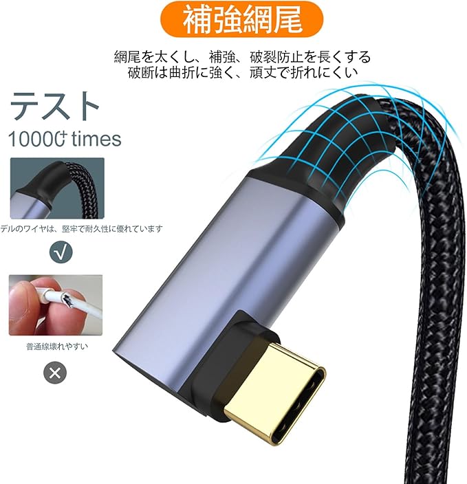 【優れたの高耐久性】USB type Cケーブル長さ0.5m。3重に編み込まれた高耐久ナイロンを採用、ケーブルの強さと柔らかさを両立し、コード部分はねじれや折れに強く、断線しにくい。10,000回以上の曲げ試験と10,000回以上の指抜き試験にに合格しており、耐久性にとても優れております。