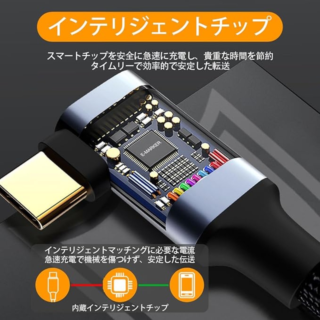 【100W急速充電、L字設計】USB Cケーブルは最大20V/5A (100W)まで安全かつ安定して出力できます。L字のType cケーブル設計、自宅用、職場用、旅行用などいろんな場所で大活躍しています。▲充電器と接続する機器がPD対応している場合に限ります。※ご使用のデバイスにより供給スピードが異なります。