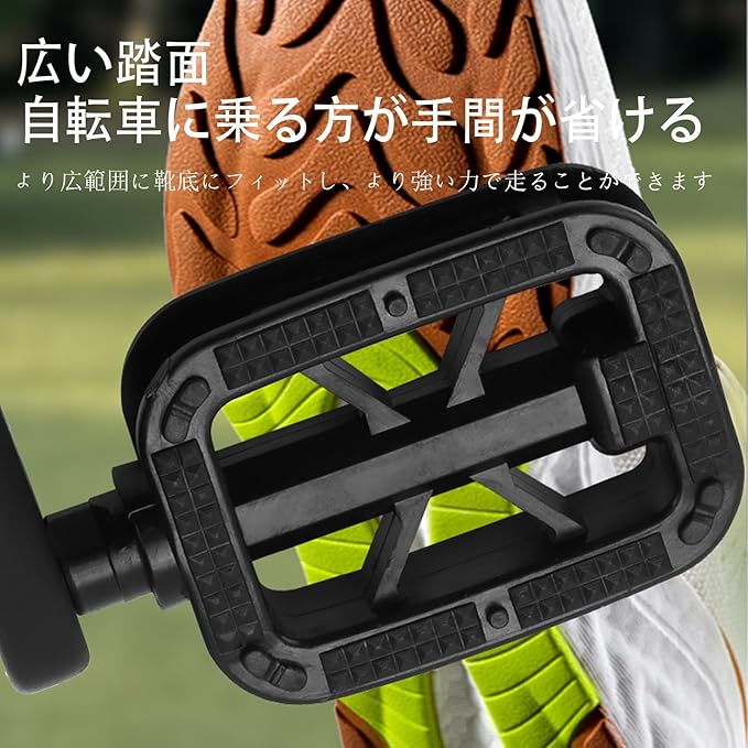 【広い踏み面】ペダルの踏面は広く設計しているので、パワー伝達性能も良好です。