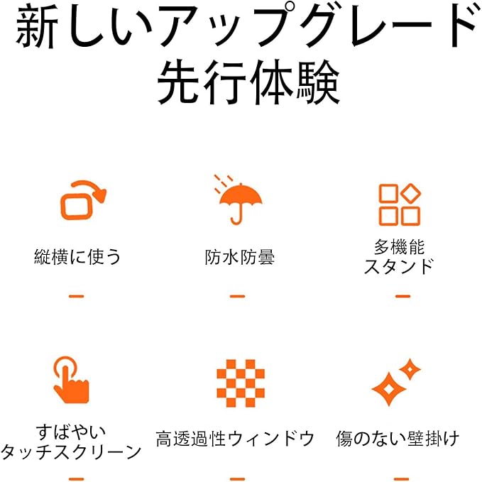 【IPX6防水】本製品は完全防水ではありません、水中に沈めるといった使用は控えてください。曇るのを防ぐため、水温が40℃以上の水でのご利用をご遠慮ください。ケースの表面にはABS樹脂素材による防水コーティングを施し、水の侵入を徹底的に防ぐよう二層防水構造を採用しました。ケース内にも密着防水シリコンが取り付けられていますので、お風呂でも安心してスマホを使用できます。
