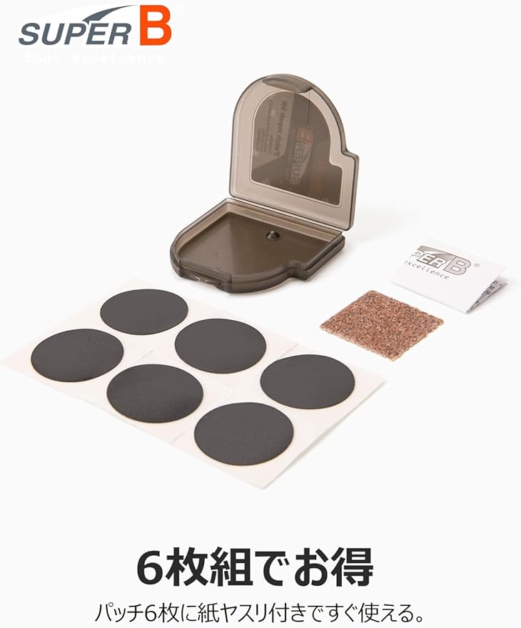 【中身が充実】パッチ6枚に紙ヤスリ、収納ケースが全部付いてくるお得セット。