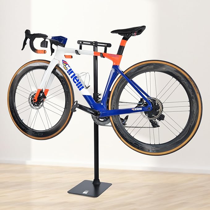 【抜群の安定性&頑丈な構造】高品質な素材を使用し、抜群の耐久性を実現しました。広くて滑りにくいベースを採用しており、倒れる心配なく安心して使用可能です。また、38mmの太く厚い鉄製支柱を使用しており、安定性と耐久性を両立。自転車の展示や簡単なメンテナンスなど様々なシーンにも最適で、愛車をしっかりと守ります