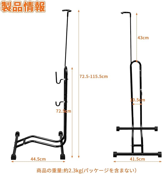 【コンパクト】自転車スタンドのサイズは44.5 41.5 72.5~115.5cmで、リトラクタブル・デザイン、重量はただの2.3㎏です。コンパクトに収納できるため、場所を取らずに保管することができます。簡単に自転車を立てることができます。また、取り外しも簡単で、自転車のメンテナンスにも便利です。