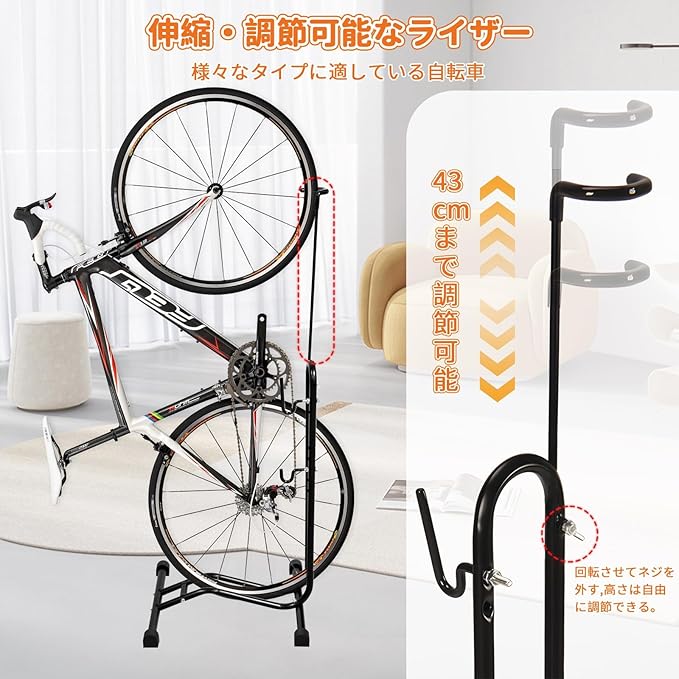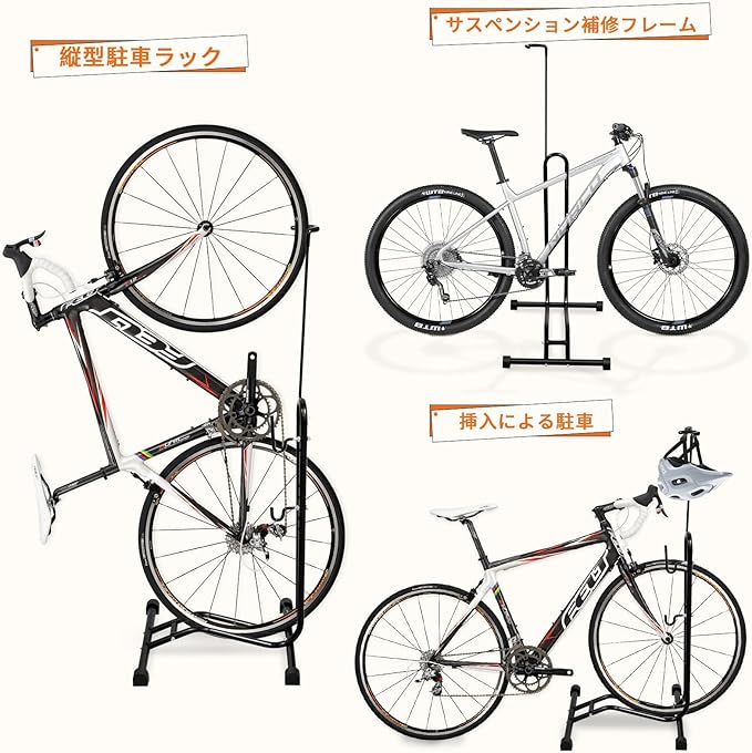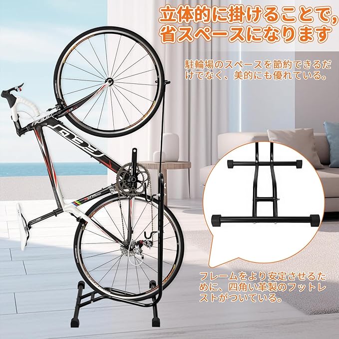 【安定性抜群】この自転車スタンドは高品質なスチール材質を採用し、頑丈で安定性が抜群です。変形にくいなスチールチューブは高い耐荷重を持つ、自転車をしっかりと支え、転落防止でありながら、自転車のタイヤにも傷なし、安心で使えます。