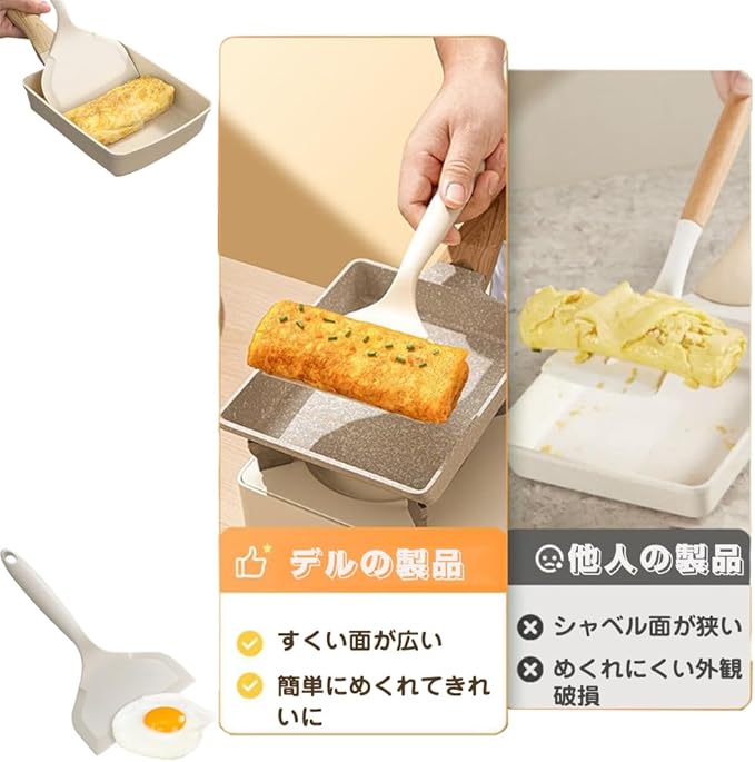 【高品質素材と実用性を兼ね揃えたシリコン卵焼きヘラ】:調理を便利にし、クオリティの高い料理を提供。必要なキッチンツールとしておすすめ。