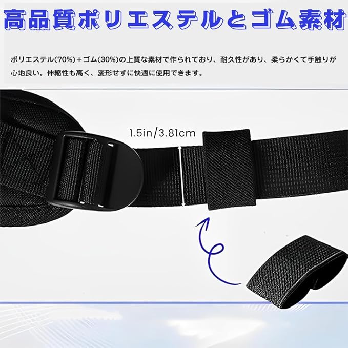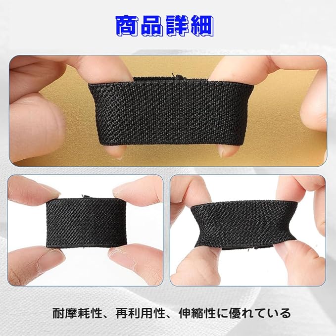 【弾性と耐久性】:上質なポリエステル織ゴム素材で作られており、変形せずに元の形に戻るため、長時間使用しても性能を維持します。