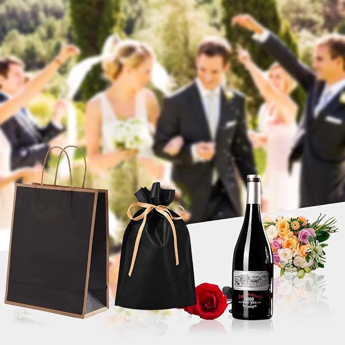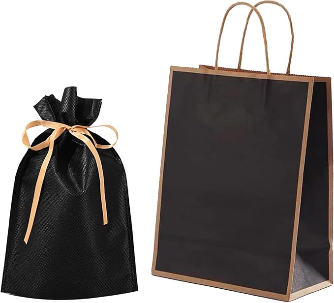 YIBOOOM ラッピング 袋 プレゼント 袋 ラッピング 紙袋 ギフトラッピング 袋 様々なシーンで活躍リボン付き 巾着袋 プレゼント袋 大 誕生日 ギフトバッグ プレゼント用 クリスマス 結婚式 小 ラッピング用品 (ブラック)