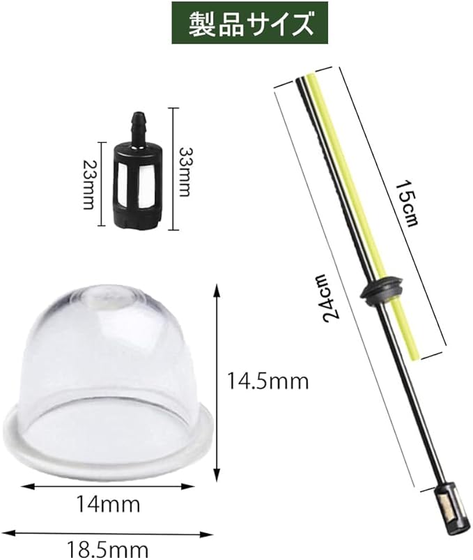 【製品サイズ】草刈払機燃料ホース:約24cm ライン プライマリーポンプ:直径約19mm、 仕入れ状況により一部仕様変更になる場合があります。