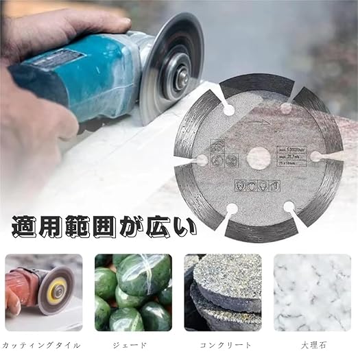 【一度に必要なものを購入】:金属切断、石材切断、木工用切断など、様々な素材に対応。5枚パックでお得な価格で提供され、様々な用途で活躍します。