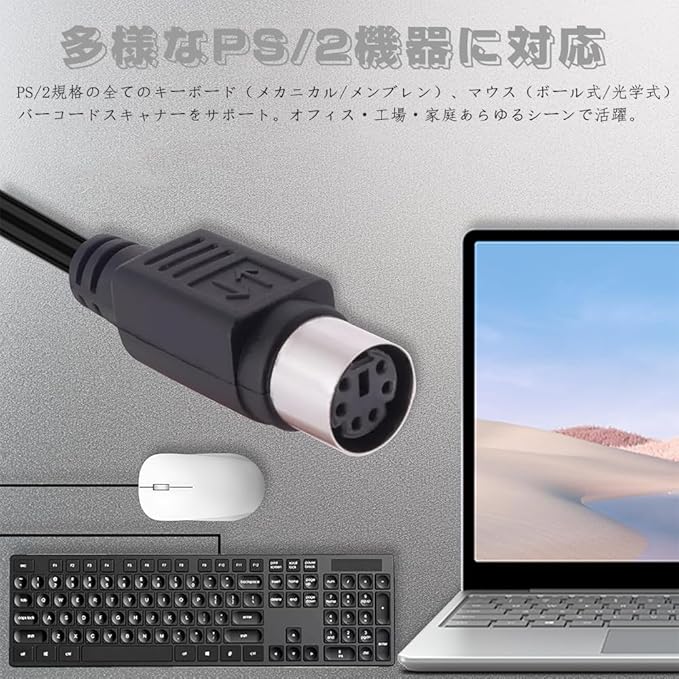 【PS/2からUSBへ、デバイス互換性を簡単アップグレード】:コンバータ1つで、旧式PS/2キーボード/マウス/バーコードリーダーを現代PCのUSBポートに接続。ドライバー不要のプラグ&プレイで旧機材を再生。