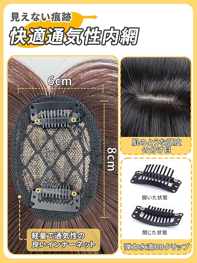 【商品仕様の説明】長さ:前髪の長さは約15cm、サイドヘアの長さは約30cm。この長さ設定は非常に巧みで、シンプルなローポニーテールから精巧なまとめ髪まで、多様なヘアスタイルニーズに応えます。 インネットサイズ:縦 8cm、横 6cm。頭部の輪郭にフィットし、着用時に安定感と快適感を提供します。 重量:約 33.4g。軽量で、着用時にほとんど存在感を感じません。 カラー:ナチュラルブラック、ブラウンブラック、ダークブラウン、ライトブラウンなど、複数のカラーをラインアップ。