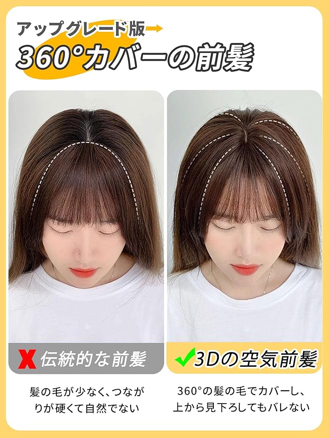 【3D 構造の前髪ウィッグ】この 3D 構造の前髪ウィッグは、軽やかなバング、サイドバング、そして後ろ髪を完璧に融合し、顔の輪郭を精密に修飾し、抜群の小顔効果を実現します。ユニークな軽やかなデザインは、ファッション感と癒しの雰囲気を演出します。日常の通勤、友人との集まり、重要なイベントなど、あらゆるシーンであなたの雰囲気を引き立て、女性の魅力を存分に発揮します。