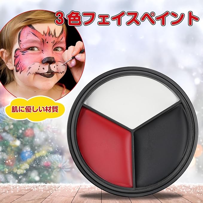 【フェイスペイント3色】フェイスペイントは3色の赤白黒で、黒塗りと白塗りのほか、ボディにバラエティのペイントを行うことができます