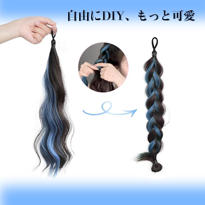 【ゴム付きエクステ&軽量で快適】ゴム付きで簡単に装着でき、頭皮に負担をかけません。軽量設計のヘアエクステなので、キッズも長時間使ってもストレスはありません