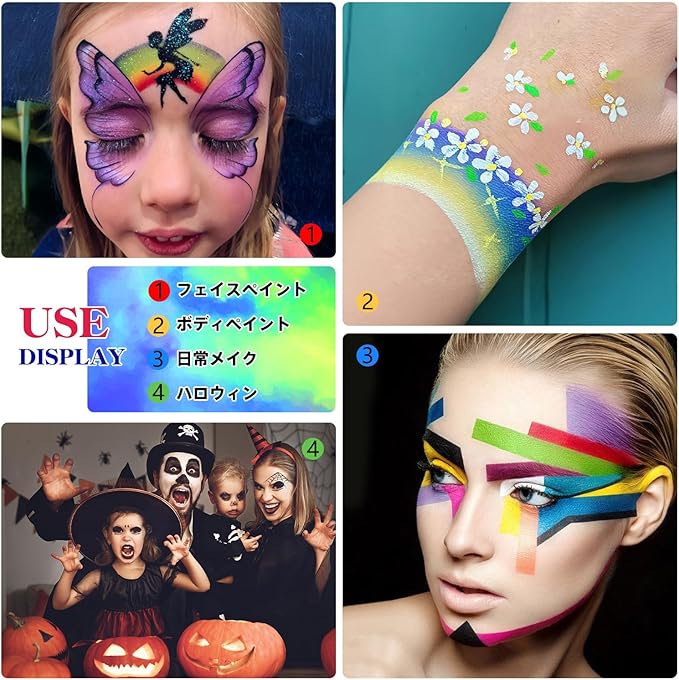 【水性顔ペイント&簡単水洗】水性ボディペイントなので、水に溶けやすいです。水で簡単に落とせます