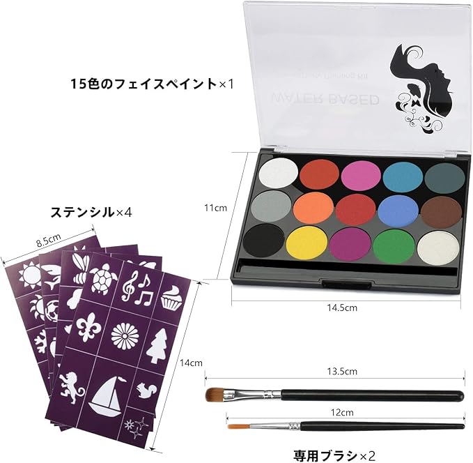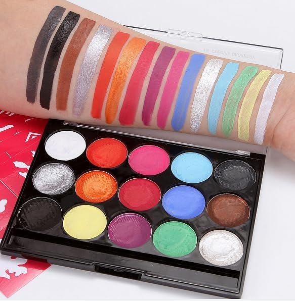 【豊富な15色セット】フェイスペイントは全部で15色あり、顔塗りだけでなく、光沢感のある仕上がりにもできます