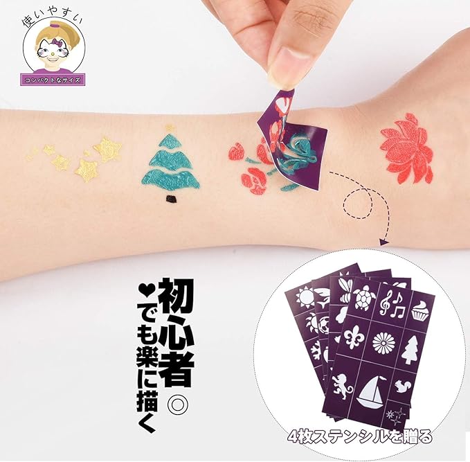 【安全の素材&高着色】安全の材質を採用し、普通なボディペイントよりもっと高発色と高着色ですし、描きやすいです