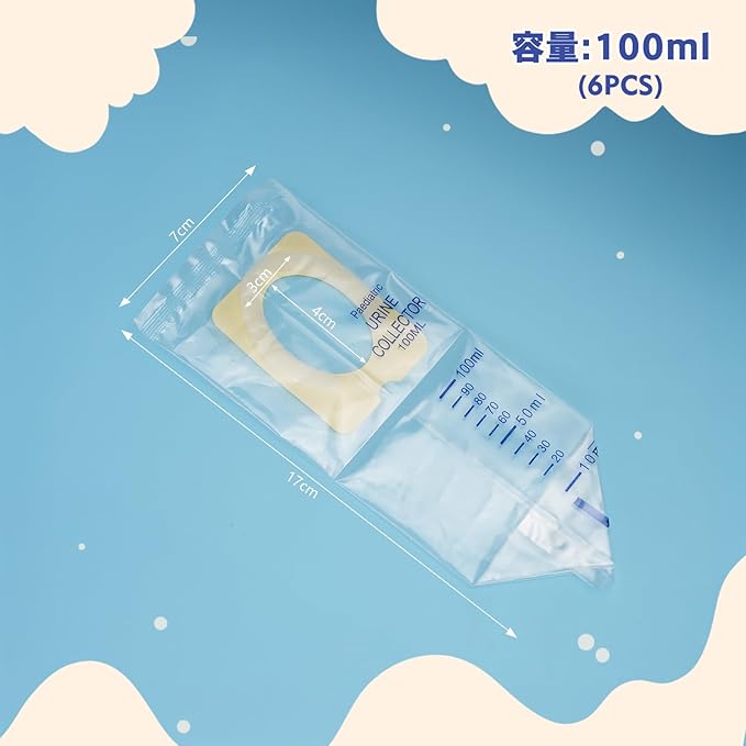 小児用採尿パック 100ml容量 6枚 採尿パック さいにょうパック 小児用採尿袋 持ち運び 便利 軽量 使い捨てベビー尿バッグ 粘着面付き スケール付き 幼児 男の子 女の子 けんにょう 採尿 | etshop