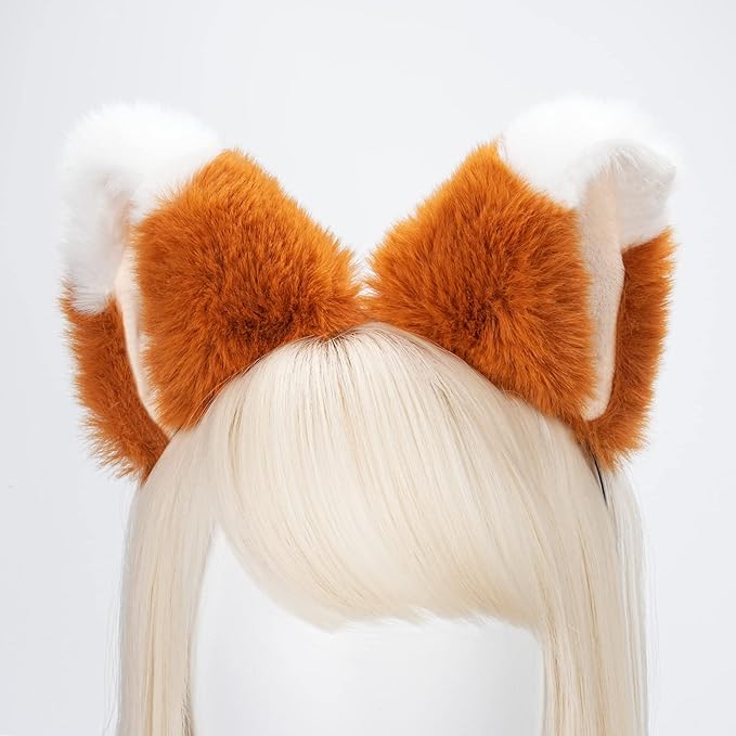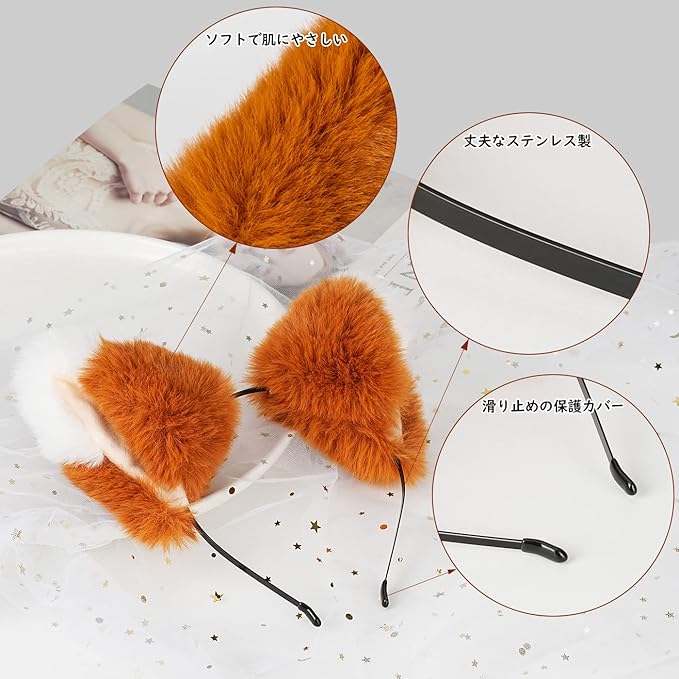 【柔らかい材質】キツネ耳は高品質のフェイクファーを採用し、柔らかくて快適です。両耳が狐耳のようにデザインされ、リアルでかわいいです