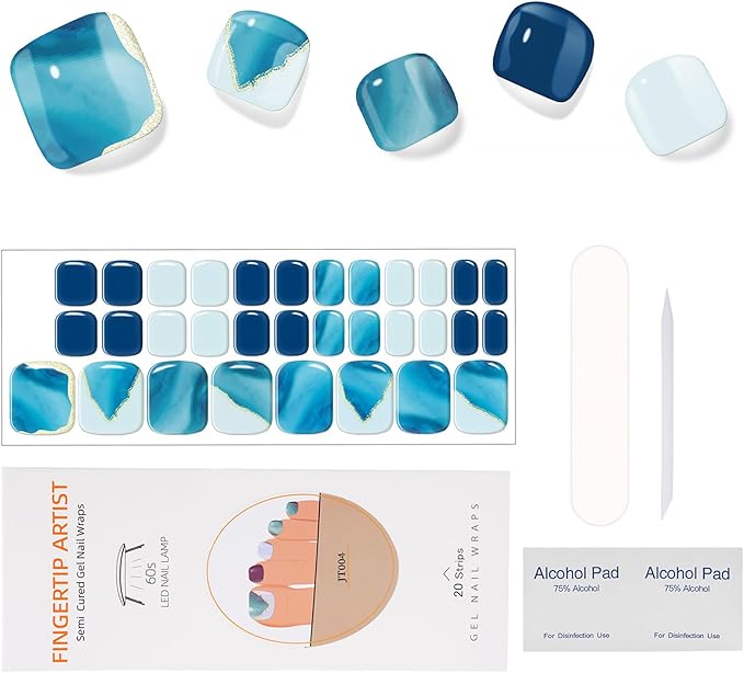 フットネイルシール ジェルネイルシール フット 硬化タイプ 貼るだけ ペディキュアシール ネイルシール 足 足用 ジェル 硬化 初心者 水に強い 長持ち ツール付き 夏 青系 マーブル S04 | etshop