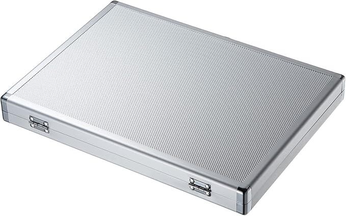 ●USBフラッシュメモリを28本収納できるアルミニウム製フレームを使ったUSBフラッシュメモリケースです。●頑丈なアルミニウム製フレーム採用によりUSBフラッシュメモリを強い衝撃から守ります。●様々な大きさのUSBフラッシュメモリに対応しています。●クッション性のあるスポンジで抑え込むような収納構造により、収納したUSBフラッシュメモリがケース内でカタカタ動きません。●一般的なA4ファイルと並べて棚に保管しやすいA4ファイルサイズです。■カラー:シルバー■サイズ:外寸/W319 D230 H37mm収納部内寸/W25 D70 H8mm※USB収納部の深さは約8mmですが蓋側のスポンジが沈み込む構造なので+2~3mm程度の厚みであれば収納可能です。■重量:約588g■材質:フレーム/アルミニウム、表面/ABS樹脂、内部/EVA■収容量:USBフラッシュメモリ 28本