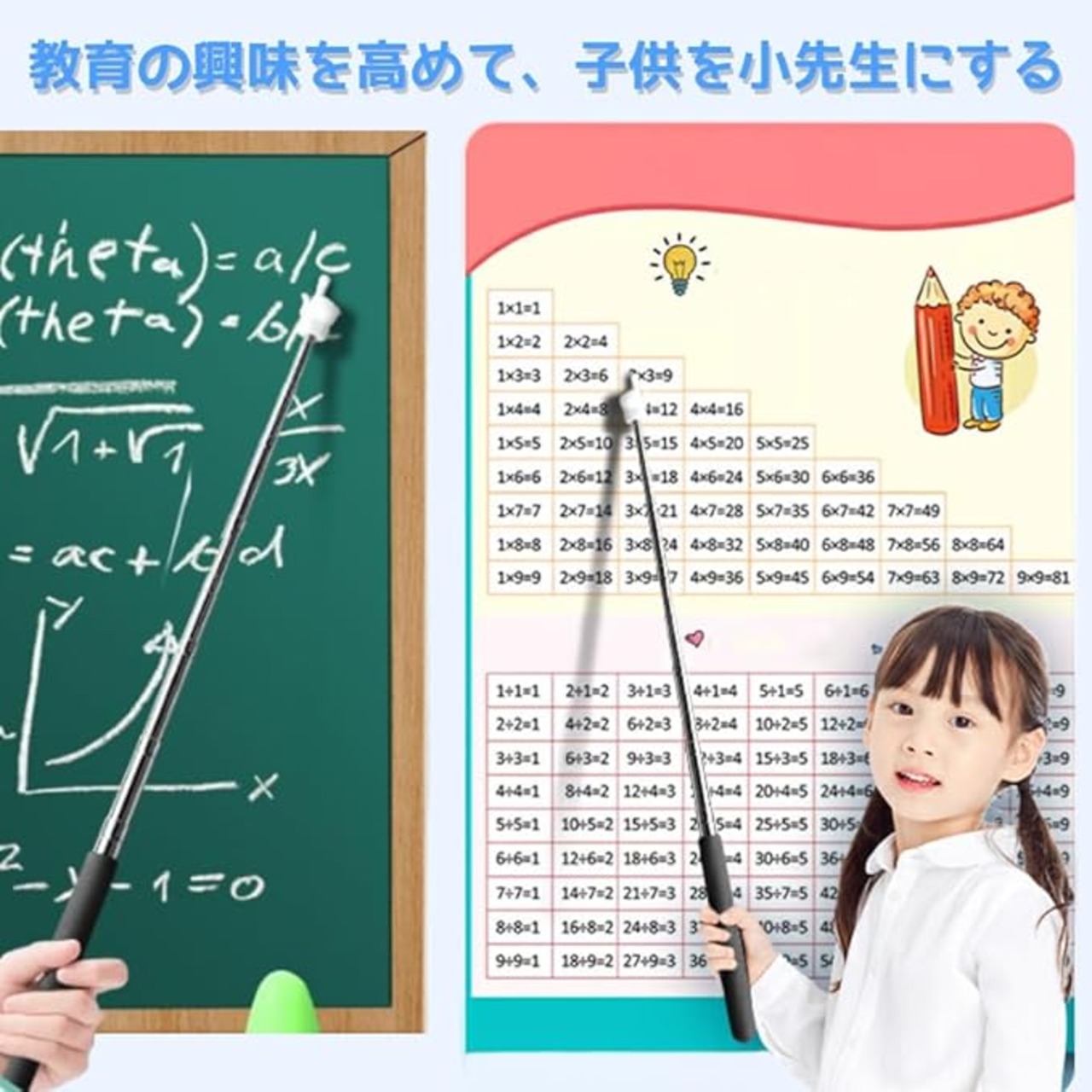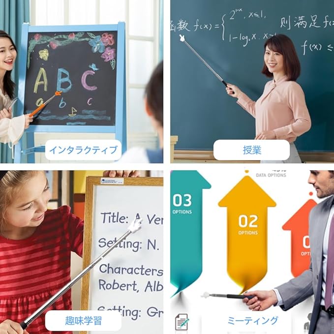 【高品質材料、快適な手触り】伸縮式教育棒はステンレス材質を採用し、丈夫で長持ちする寿命を確保した。伸縮式教育棒に滑り止め研磨ハンドルを備え、快適な手触りと安定した握りを提供する。