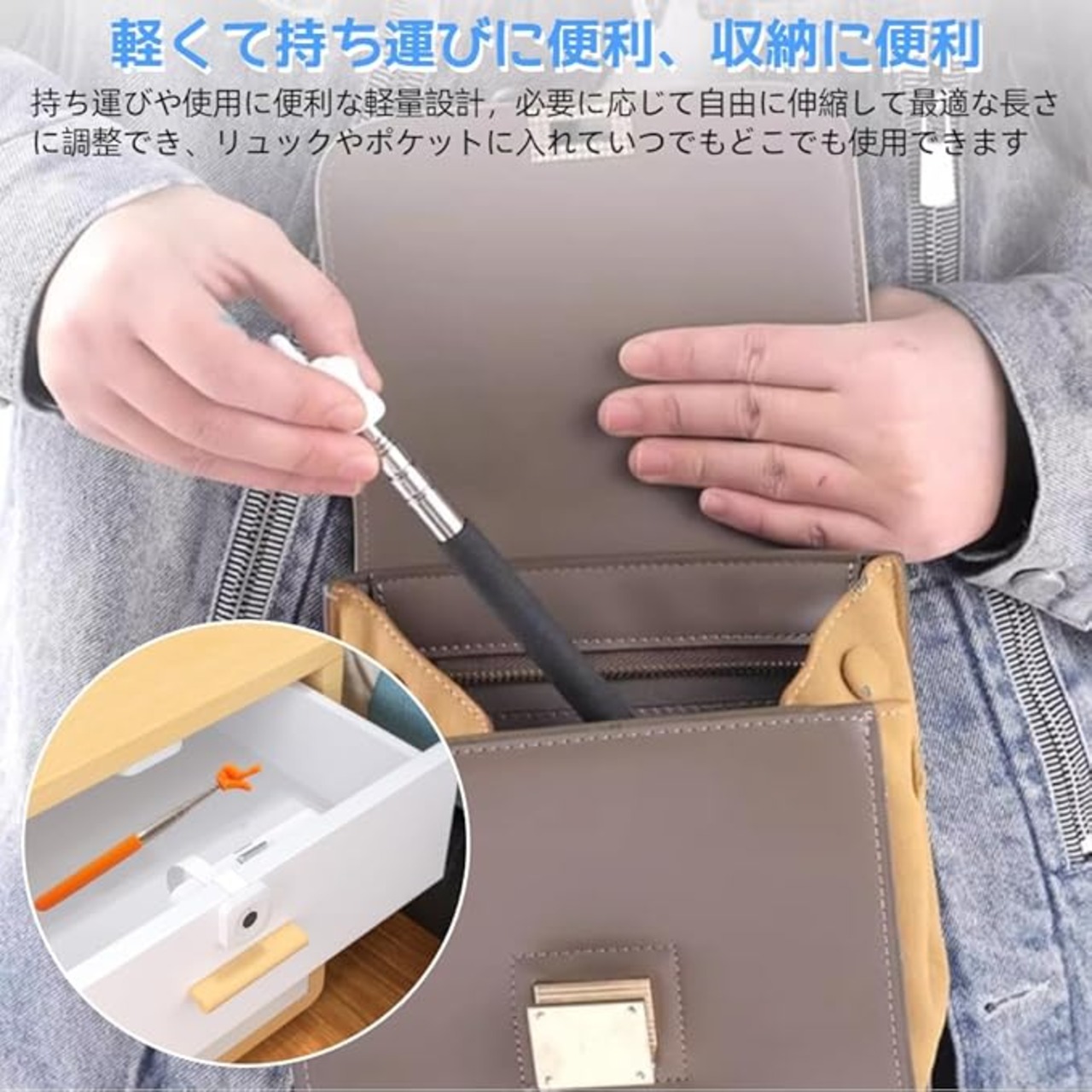 【軽量で携帯性】持ち運びや使用に便利な軽量設計。自由に伸縮でき、必要に応じて最適な長さに調整できます。リュックやポケットに入れて、いつでもどこでも使用でき、指導やプレゼンテーションをより便利にすることができます。