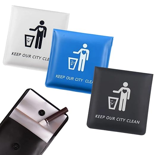 【内容】携帯用灰皿袋3枚入、サイズ:8CM 8CM、黒、青、白。