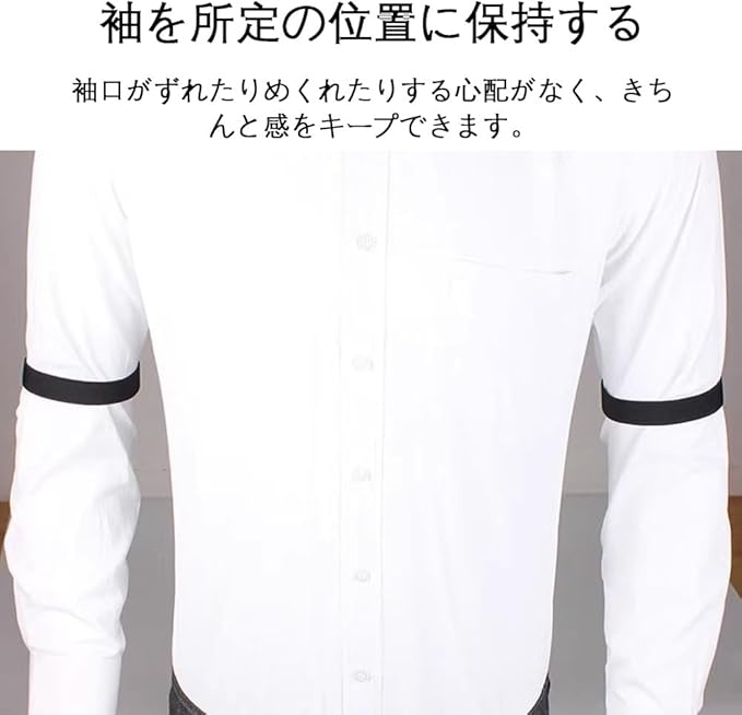 [QIKEJI] アームバンド 袖 バンド アームバンド メンズ 調節可能な固定シャツ ストレッチ スリーブ ループ アーム ループ おしゃれ フォーマル人気ギフト 1ペアセット (ブラック) | etshop