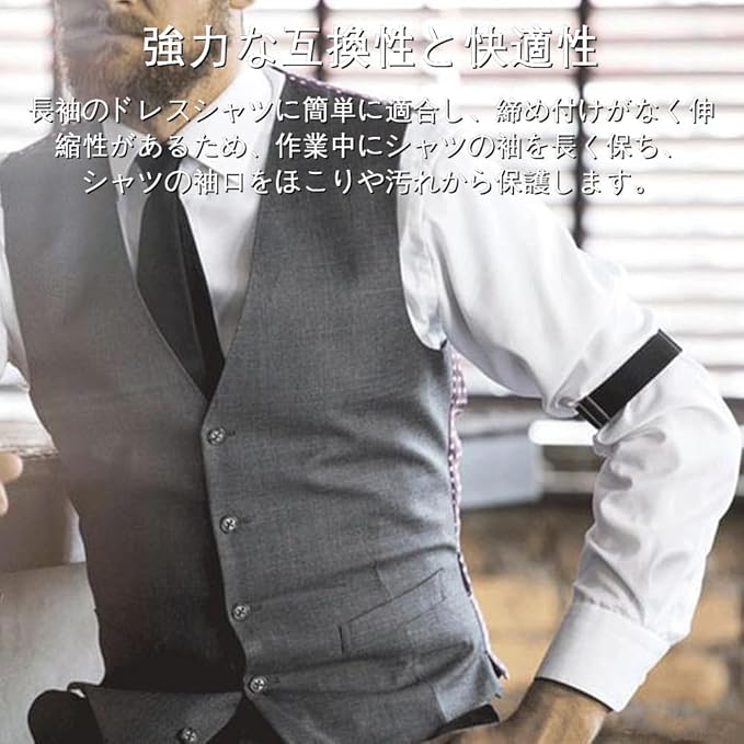 【 複数の用途 】: 教師、バーテンダー、ビジネスやレジャーの機会、事務員、ウェイターなどに最適で、仕事中にシャツの長袖を維持するのに役立ち、シャツの袖口をほこりや汚れから守ります。