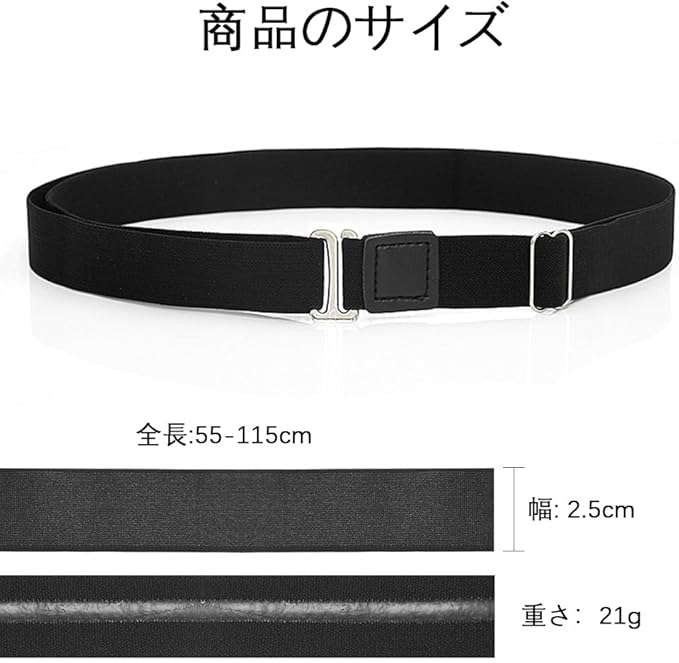 【 商品内容 】: サイズ:長さ55-100cm x ベルト幅2.5cm 素材:ナイロン、ゴム、金属 重さ:21g