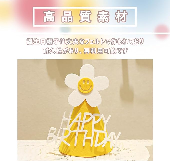 【高品質素材】誕生日帽子は丈夫なフェルトで作られており、耐久性があり、再利用可能です。丈夫で破れにくいので、繰り返しお楽しみいただけます。お子様連れでも安心してお祭りをお楽しみください。