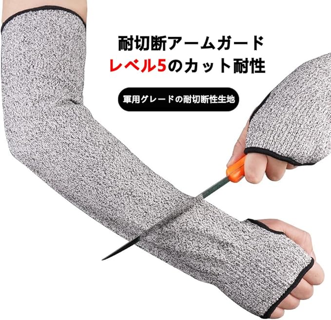 [QIKEJI] 防刃アームカバー 作業用 1足セット 耐切創レベル5 指穴付き けが防止 刃物対策 アウトドア 大工 園芸 耐摩耗 安全防護 防災 農作業 工場 うんぱん 男女兼用 | etshop