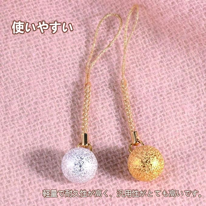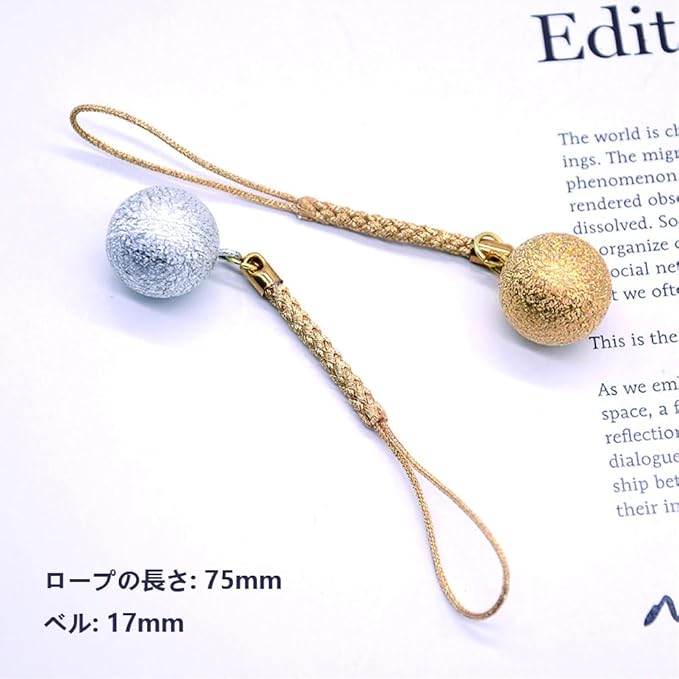 【製品仕様】ロープの長さ:75mm ベル:17mm 【高品質の素材】:水琴鈴とは、水琴窟の音を再現して作られた鈴です。余韻のある澄んだ優しい音色が特徴的で、一般的な鈴とは異なる魅力をもっています。神秘的で心に残る鈴の音をぜひ楽しんでみてください。 【特徴】:浄化や邪気を払う役割も:鈴には、浄化や邪気を払う力があると言われています。その他に、幸運を呼び込んでくれる、とも言われています。大事な物事の前に音色を聞くことで、運気を味方につけられるかもしれません。 【実用】:父の日や母の日、敬老の日などにちょっとしたギフトとして贈るのにもぴったりの品物です。ゴールドカラーとシルバーカラーの2色セットなので、片方を大切な方に贈ったりするのもよいでしょう。 【多用途】バックやリュック、お財布やポーチ、スマホなどにつけるストラップとしても使いやすいですし、着物用の小物としても存在感のあるアクセサリーパーツとなります。ファッションの邪魔にもならず、一つ持ってみると音に癒され、その良さがわかってリピート率の高い鈴となります。