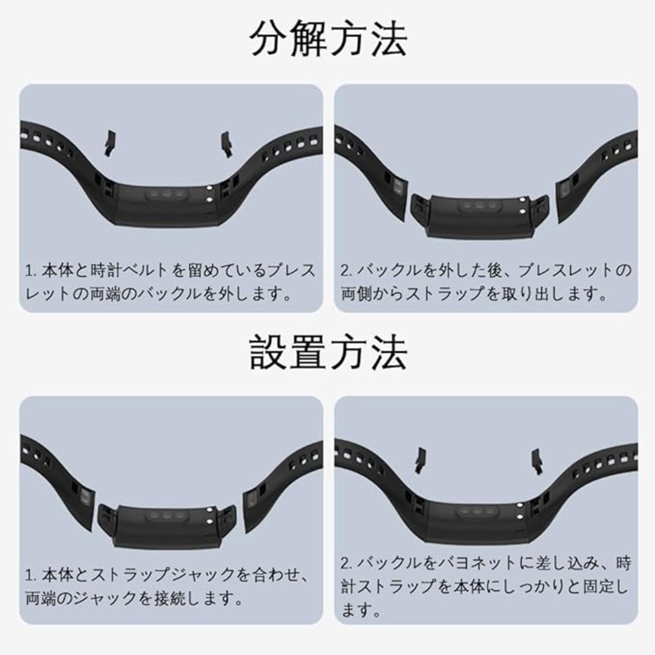 【一体型バンド】: 一体型バンド、しっかり守れます。取り付けやすく、ブレスレット本体を外して、方向を調整して、本体のスロットに入れて、両手の左右のバンド、少し力を入れて押すだけです。