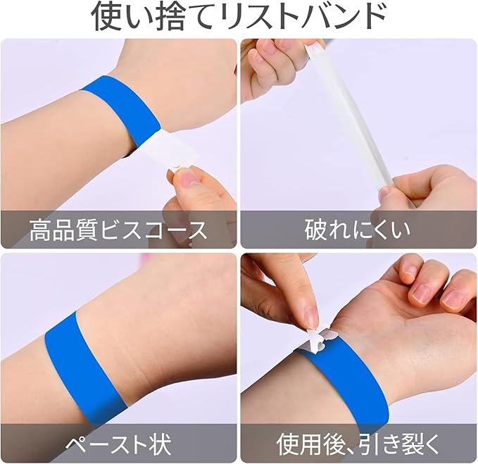 ▶️【水場でも適用】防水機能と耐引裂性に優れた使い捨てリストバンドので、海やプールのイベントでも破れず使用できます。