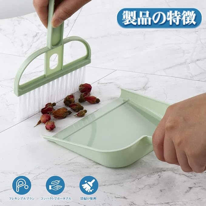 【多機能で全シーン対応】室内の床のゴミ、玄関の砂埃、車内の細かいホコリまで、セット内の柔らかいブラシとフィット感抜群のチリトリですべて簡単に処理可能。チリトリの滑り止めエッジで屋外での掃除でもゴミが散りにくく、一つのアイテムで家の中から庭、車内まで幅広いシーンをカバーします。